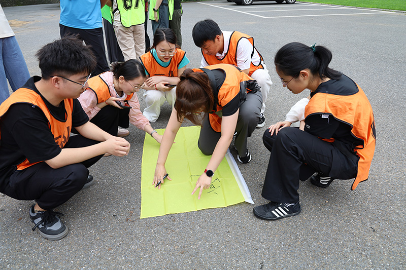 活动当天,参训人员分为两组,先后完成了“鼓动人心”、“盲人方阵”、“旱地冰壶”等六大经典拓展项目。在“盲人方阵”项目中,队员们克服沟通障碍,展现了出色的团队默契;“旱地冰壶”环节则考验了团队的战略协作能力;最后的“七巧板”项目更是让参训人员深刻体会到全局观念的重要性。每个项目结束后,教练都组织大家进行经验分享和总结反思。