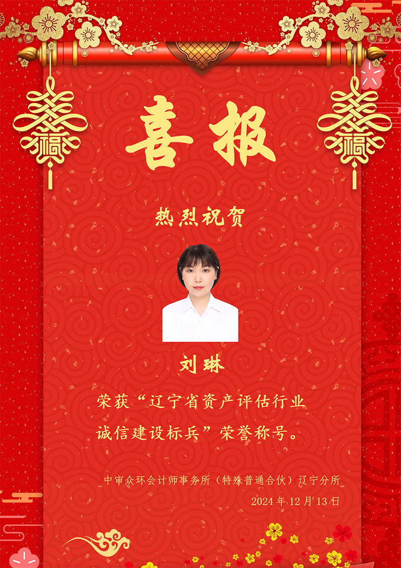 上一条:中审众环会计师事务所(特殊普通合伙)辽宁分所吕鹏荣获“辽宁省注册会计师行业诚信建设标兵”荣誉称号。